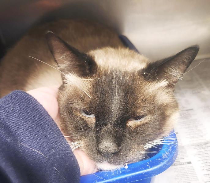 Notes: Gunther, 6 years, male. Super shy guy who tolerates pictures as long as you tell him how handsome he is. Weighs about 12 pounds. Sibling of Big Baby and PeeWee.