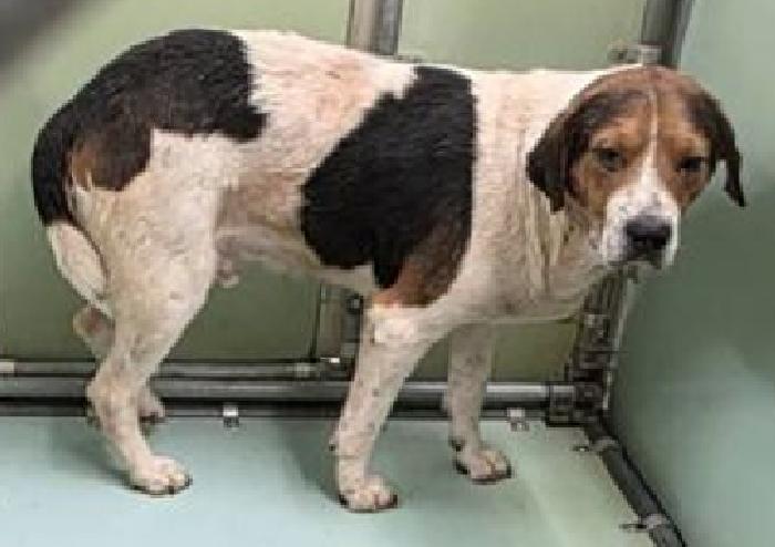 Notes: Bradford, Hound, male, White with Black, 3 years old, 7 months old, Large, Pet ID 58731603